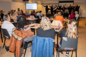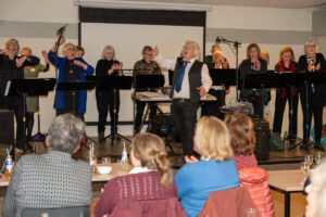 Om de vergadering extra gezellig te maken had Antoinette het Meezingkoor uit Eindhoven uitgenodigd. Dus naast gezellig bijkletsen is er uit volle borst meegezongen. Bedankt!