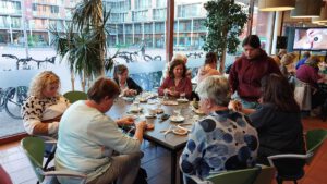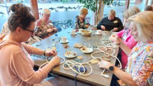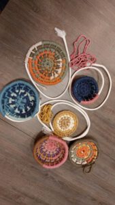 Wat een bijzondere workshop had Antoinette weer georganiseerd deze maand, namelijk weven rondom een koord en zo een mandje of onderzetter maken. Tijdens deze workshop leerden de meeste dames weer een compleet nieuwe techniek.